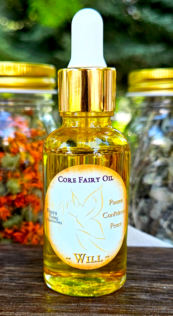 All Core Fairy Oils contain grapeseed oil, infused with dried natural ingredients, castor oil, and essential oils.